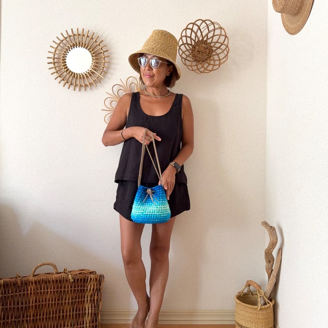 Holoholo Puff Bag ホロホロパフバッグ size : S color : moana gradation モアナグラデーション シュークリームのようにコロンとした巾着ポーチ 携帯、小銭入れ、リップを入れて ちょっとそこまでのお出かけに便利なサイズです ✔️ご参考までに名刺サイズのカードを入れた画像を添付しました < size > 横幅 : 約17cm 高さ : 約17cm < 素材 > 本体 : cotton 100% 取手 : cotton 100%